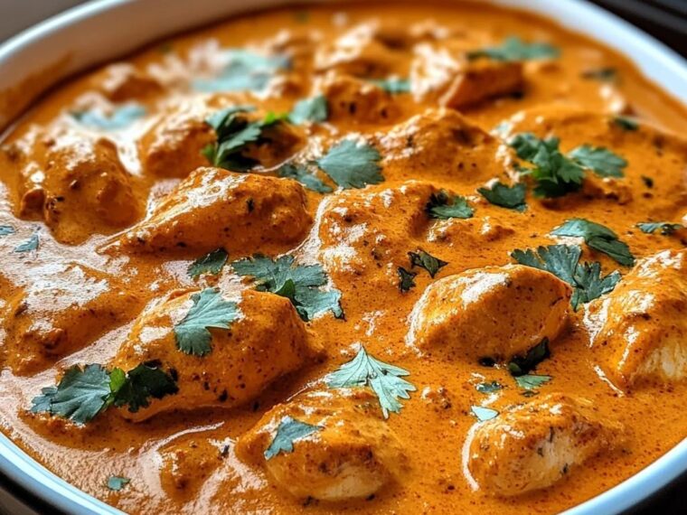 Pour in heavy cream or coconut milk, stir well, and simmer for 10–15 minutes until chicken is fully cooked and sauce is thickened.
