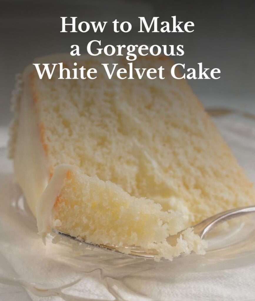 White velvet cake has the same luscious texture and tangy flavor as red velvet cake, minus the red food coloring and cocoa. While many vanilla cakes are yellow-tinted, this white velvet cake recipe uses egg whites and buttermilk for a bright white crumb. Not to mention, every bite is light but also moist and as soft as velvet!