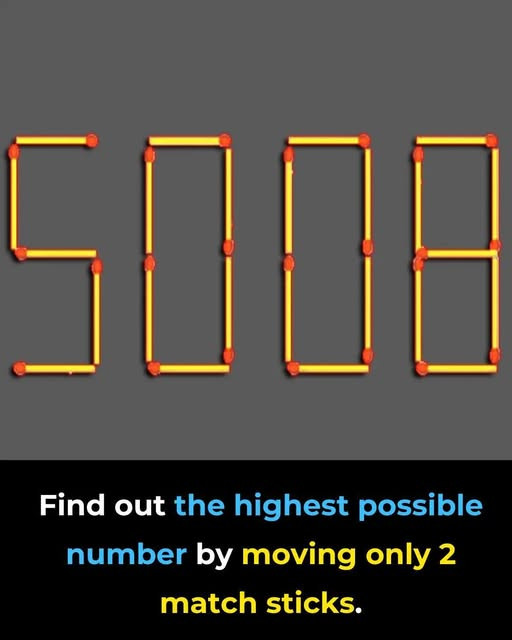 Your task is simple yet tricky: Move just two matchsticks to create the highest possible number.
