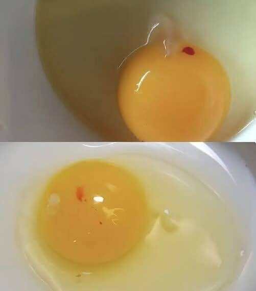 Contrary to popular belief, those red spots are not underdeveloped embryos—they are small blood clots. Known in the egg industry as “meat spots” or “blood spots,” they form when tiny blood vessels in the hen’s ovary or oviduct rupture during the egg-laying process. The blood or tissue then gets incorporated into the egg as it’s formed.